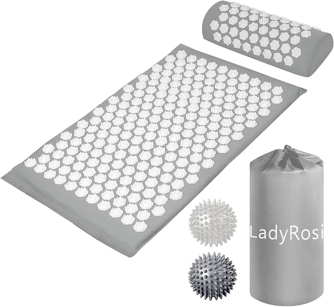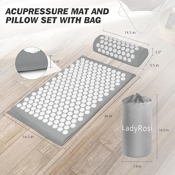 LadyRosian Acupressure Mat and Pillow Set with Oxford Bag, for Neck Back Pain, Muscle Relaxation Stress Relief, Relieve Sciatica and Pain Relief Set (Grey)