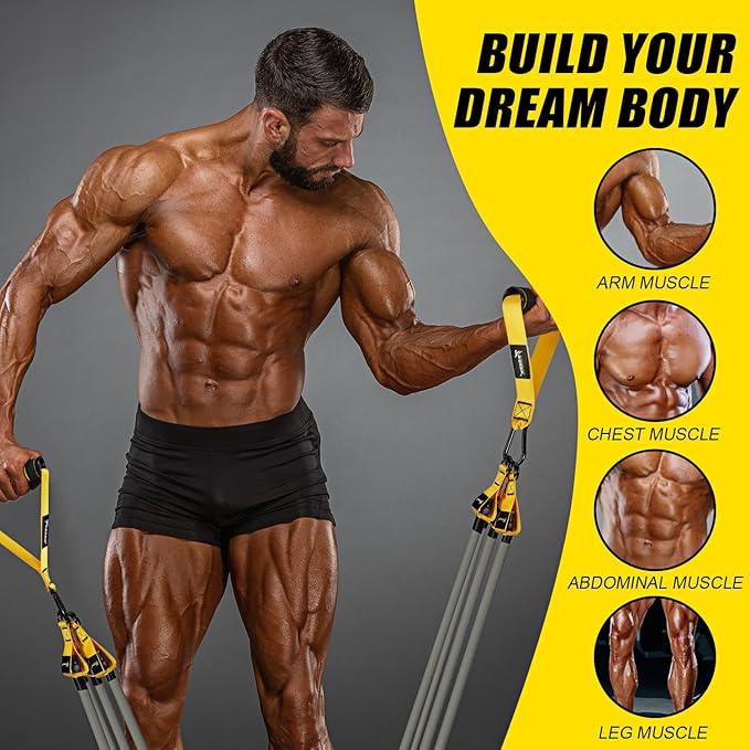 - 【Male-Focused Resistance Bands】 Specifically designed and crafted for men who seek greater challenges,A real man who doesn't want to compromise should take the challenge of resistance bands for men. Forget one-size-fits-all Exercise bands, our bands for working out are tailored for men.Easily build up strong muscles and be the most attractive man at the pool party!