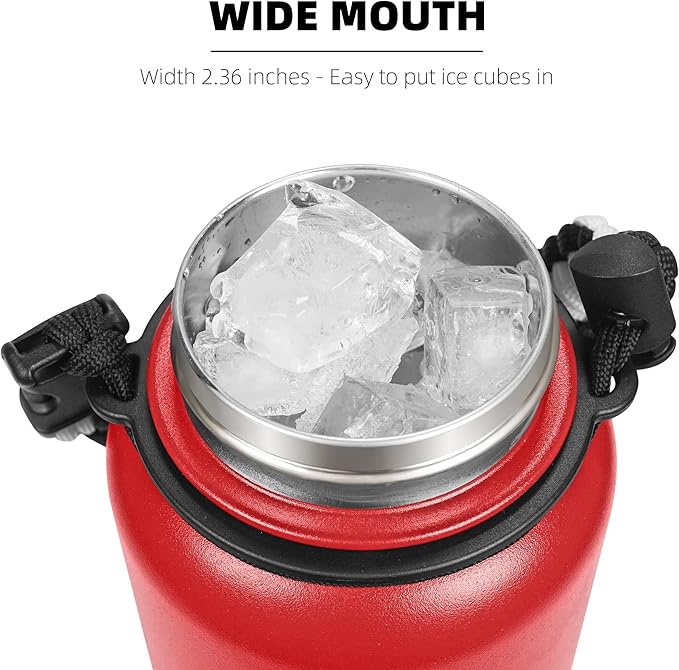 Fanhaw 40 Oz Stainless Steel Insulated Sports Water Bottles with Straw for Kids, Men and Women (Red)
