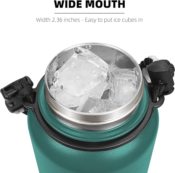 Fanhaw 40 Oz Stainless Steel Insulated Sports Water Bottles with Straw for Kids, Men and Women (Green Blue)