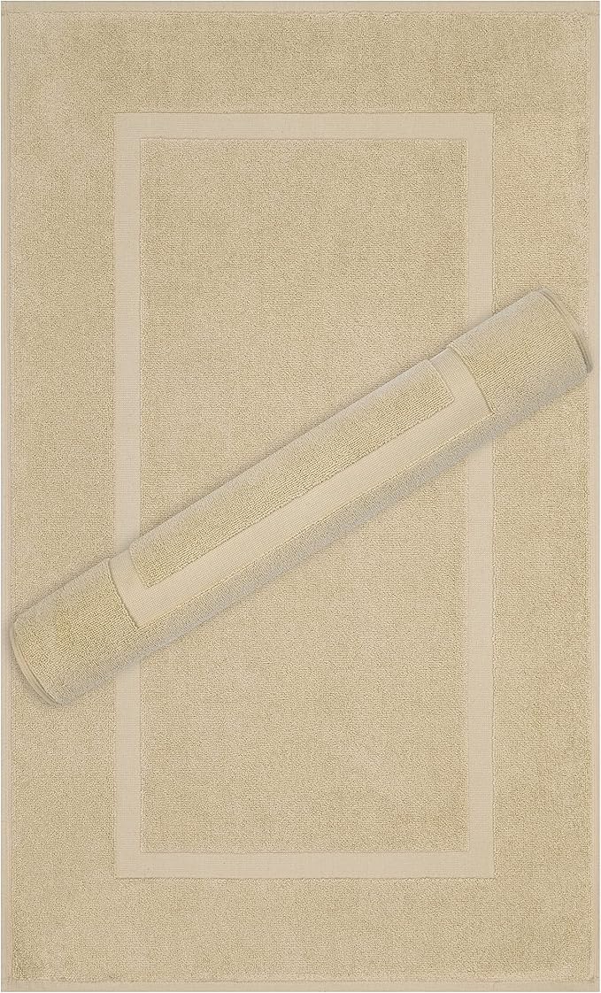 Cotton Paradise 100% Cotton Bath Mats for Bathroom Floor Set of 2 Pack, 20x34 Soft Absorbent Washable Quick Dry Tub Bathmat, Beige Towel Bath Mat