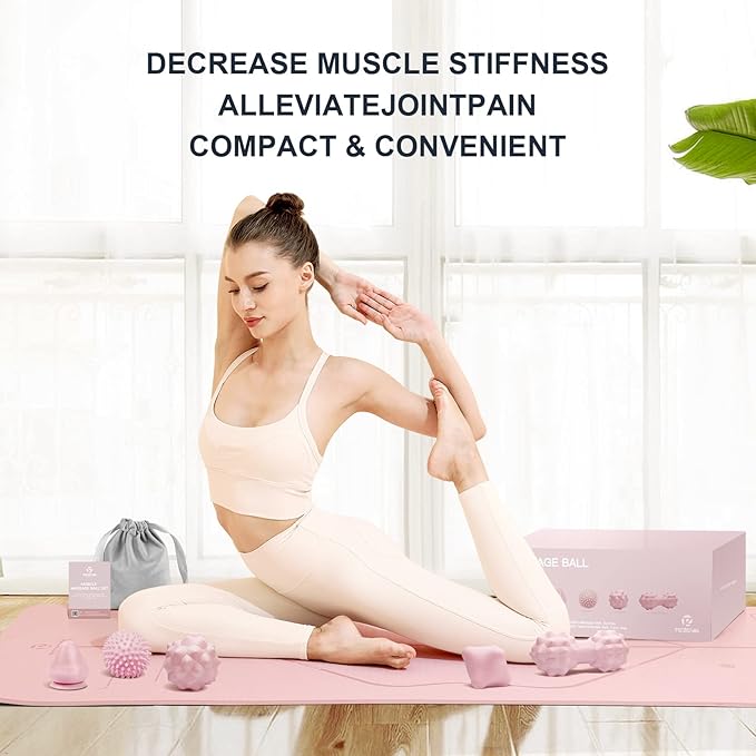 Massage Ball Set for Myofascial Trigger Point Release & Deep Tissue Massage, Firm/Soft Mountable Self/Peanut/Spiky/Hand Exercise Ball