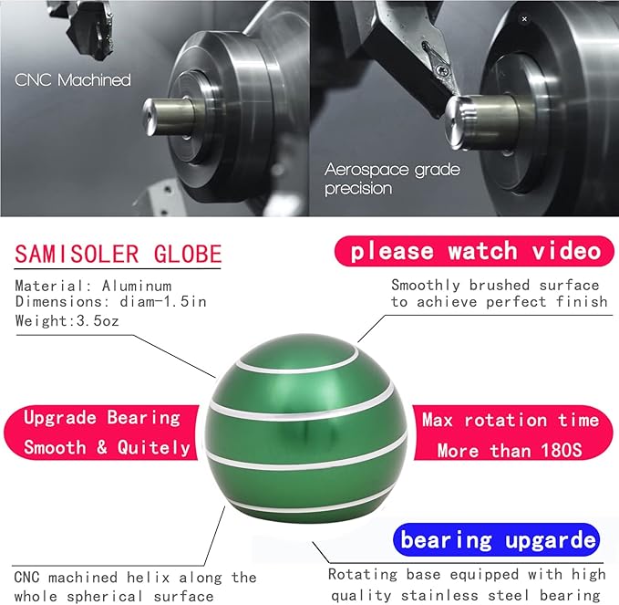 - High-quality: 1.5" Size, Aluminum metal and machined by CNC,With high-quality bearing for spinning 180 Seconds.