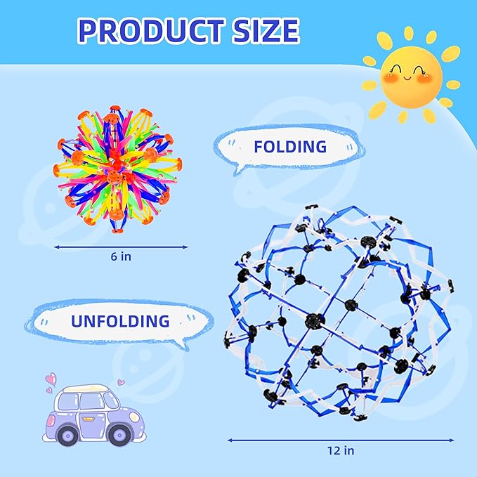 - Upgraded Expandable Ball Toy:Our AGSIXZLAN breathing ball expandable magic breathing ball,Made of high-quality ABS plastic,this collapsible ball toy,fidget toy is durable, flexible, and free of peculiar smells. With vibrant colors, it magically expands from 6" to 12" and shrinks back to its original size, offering endless sensory fun and stress relief