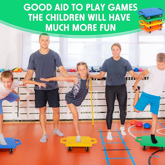 - Scooter Board Set: you will receive 4 pieces of scooter boards with handles, including green, red, blue, purple colors, each scooter board measures about 11.22 inches, ideal for kids to play at home or at school