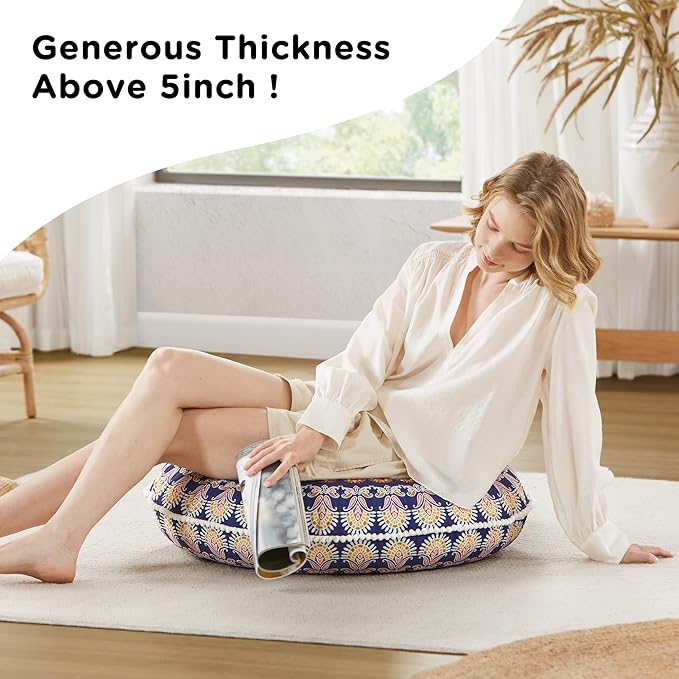 - 2 IN 1 INSERT AND COVER: This round white pillow insert is the perfect fit with this mandala cover. Purchasing both separately often results in the lesser quality of one so you not only save time but your product is consistent as well. This cushion is added with premium shredded memory foam that has a good rebound so it won’t flatten like typical floor cushions.