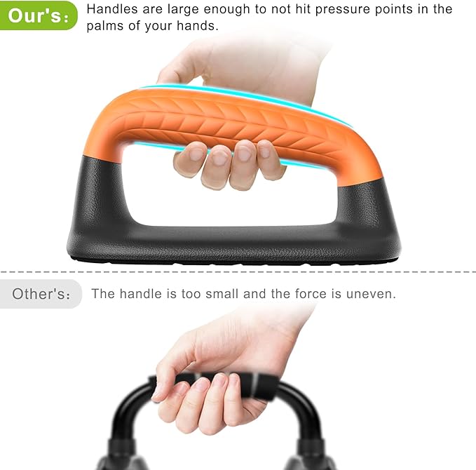 - 【Ergonomic Design for Comfort】Our push-up bars feature soft rubber handles that provide a comfortable grip, reducing wrist strain and easing palm pressure.