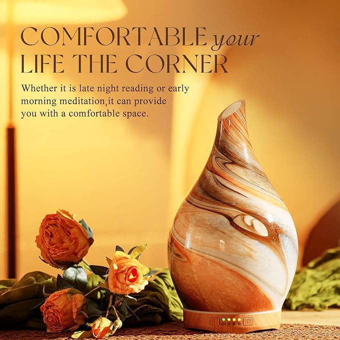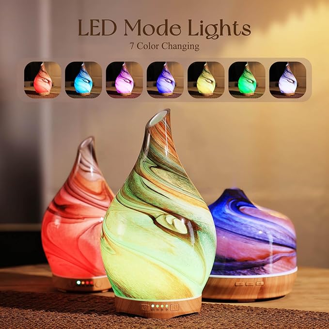 - UNIQUE ART DECORATIVE DESIGN - Our 280ml glass essential oil diffuser has an elegant starry pattern glass cover and wood grain decorative base. It is very suitable for your bedroom, living room, children's room, study room, office, and yoga room.