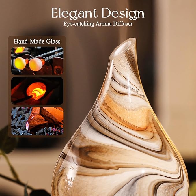 - UNIQUE ART DECORATIVE DESIGN - Our 150ml glass essential oil diffuser has an elegant starry pattern glass cover and wood grain decorative base. It is very suitable for your bedroom, living room, children's room, study room, office, and yoga room.