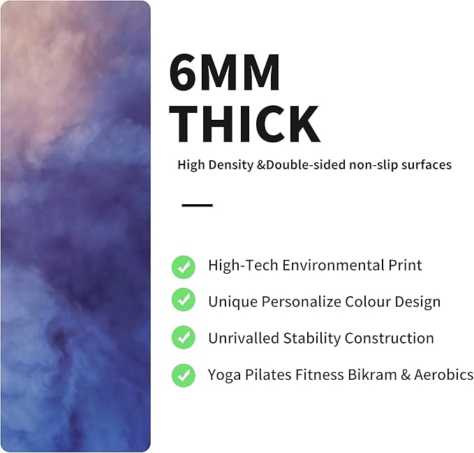 nuveti Yoga Mat Print Extra Thick TPE Non Slip Fitness Exercise Mat with Carrying Bag,72"x24" Extra Thick 6MM Exercise & Workout Mat for Yoga, Pilates Fitness and Floor Exercises