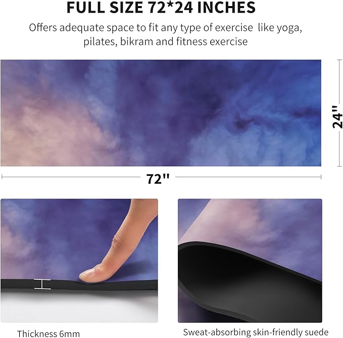 - ▨ EXTRA THICK LONG AND WIDE:72"x 24" offers adequate space to fit any type of exercise like yoga, pilates, fitness exercise and so on. nuveti's exercise mat is is more safer and comfortable. It is perfect for practicing balance postures, Especially the 6mm extra thick is high density, Provides excellent cushioning and resilience, All our mats come with a free bag for easy transport from home to yoga class.