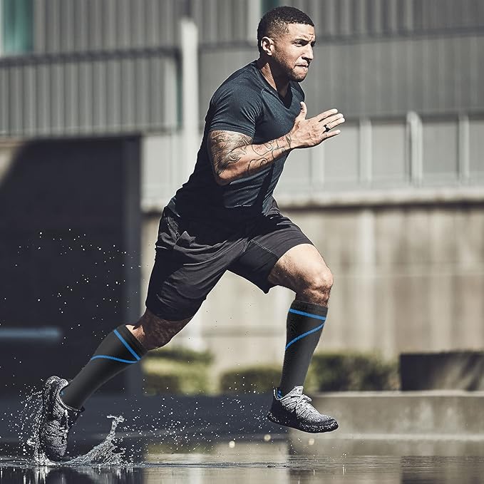 • Compression socks for men and women promote blood circulation by applying a certain amount of pressure to the legs. It reduces pain and swelling when you stand or run for long periods of time.