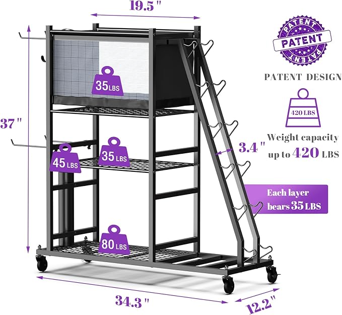 - 【Built to Hold Heavy – Up to 420 lbs】Crafted from premium-grade steel, this rack supports up to 420 lbs with zero wobble. Powder-coated surface resists scratches, rust, and sweat stains—perfect for daily use in garage gyms, basements, or training studios.