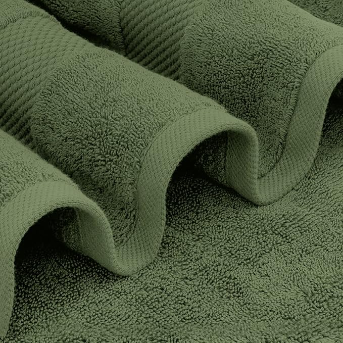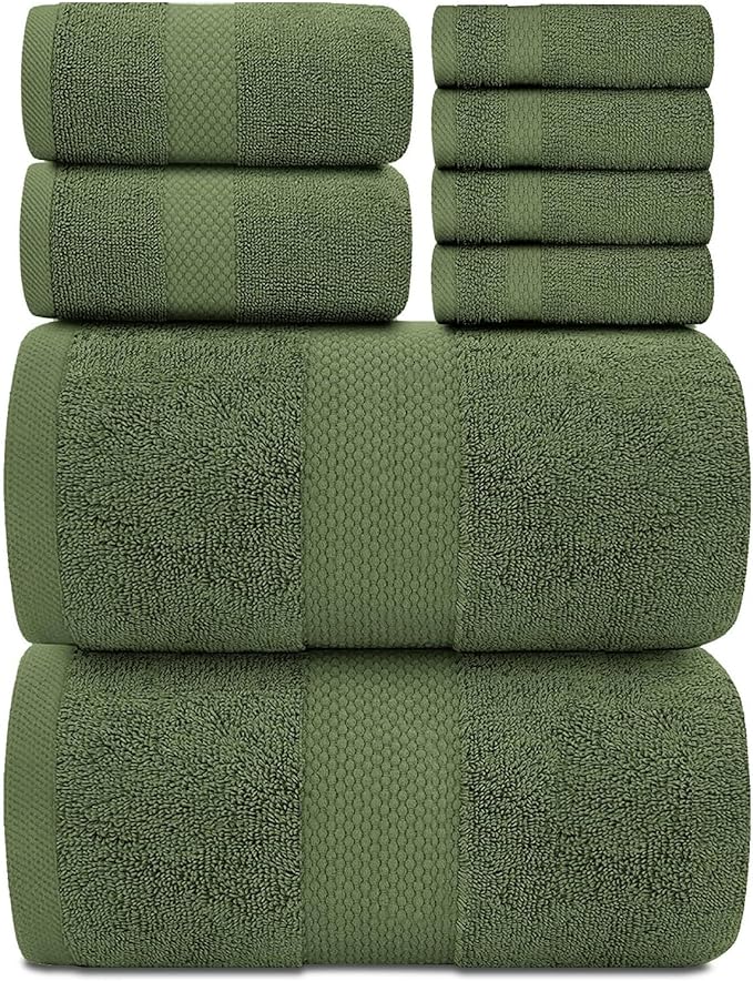 White Classic Luxury Bath Towel Set of 8 Pieces - 100% Turkish Cotton Highly Absorbent Towels for Bathroom, 2 Luxury Bath Towels 700GSM, 2 Hand Towels, 4 Washcloths, Sage Green