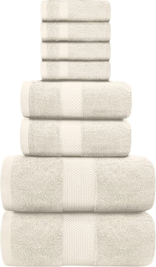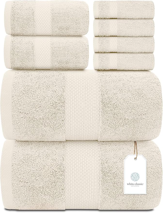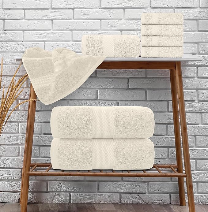 White Classic Luxury Bath Towel Set of 8 Pieces - 100% Turkish Cotton Highly Absorbent Towels for Bathroom, 2 Luxury Bath Towels 700GSM, 2 Hand Towels, 4 Washcloths, Ivory