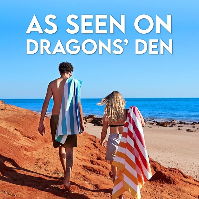 - SAND FREE BEACH TOWEL - The ultimate beach companion that leaves the sand at the beach for castles. The high-quality material means all you need to do is give it a shake and all sand will simply fall off. First seen on BBC's Dragons' Den