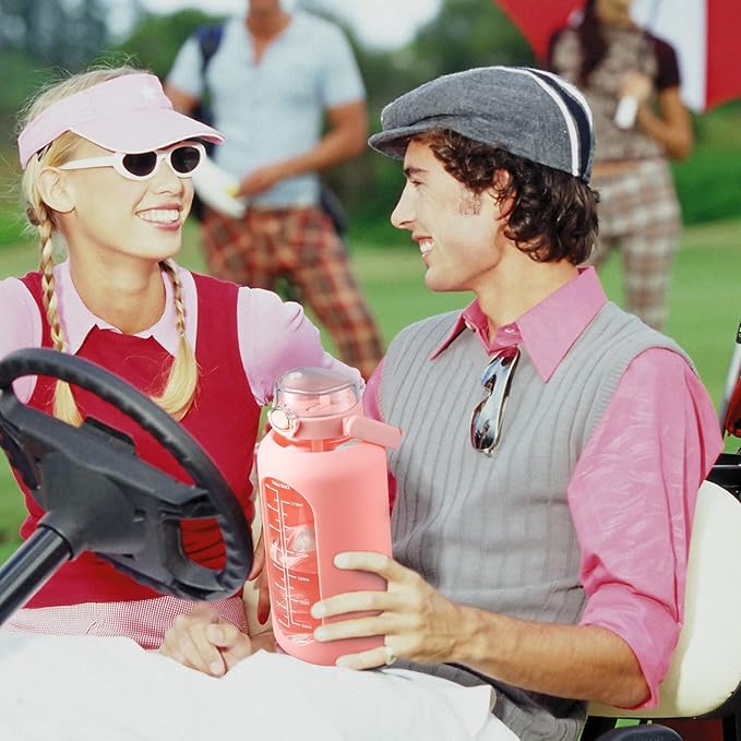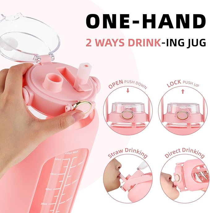 - More Function :This large glass water bottle with straw is designed with high-quality silicone sleeve to protect water bottle from slight bumps. In order to make the half-gallon(2.2 liters) big gym motivational water bottle easy to carry we have equipped it with handle