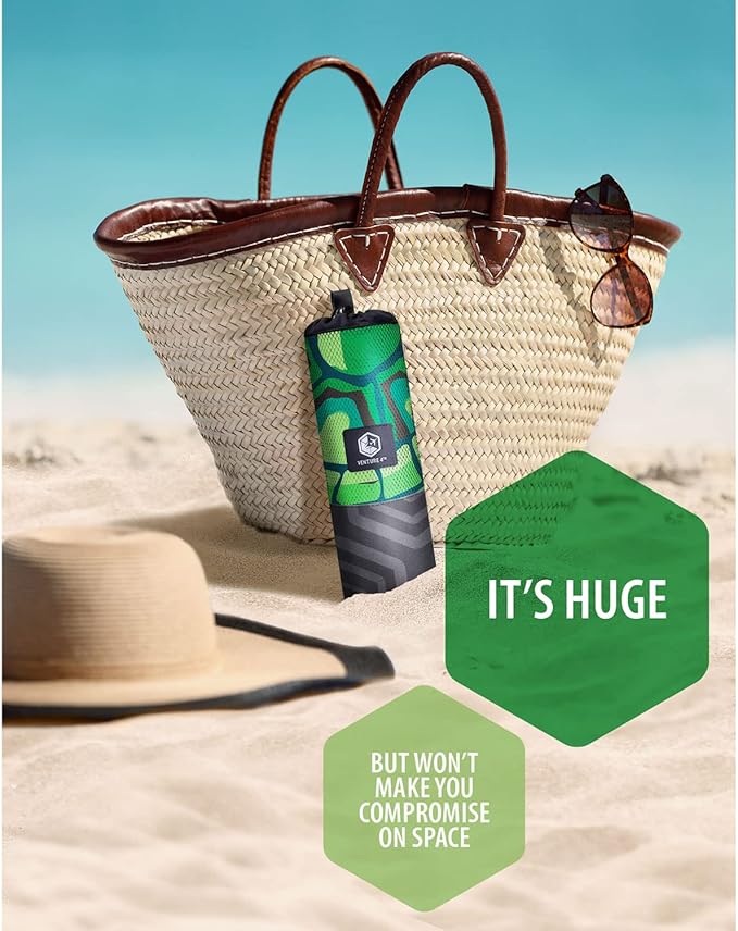 VENTURE 4TH Microfiber Beach Towel: Quick-Dry, Compact, Sand-Free, Absorbent, Sandproof and Lightweight - Perfect for Camping, Beach, and Roadtrips (Turtle Bay Design | 35x78 inches)