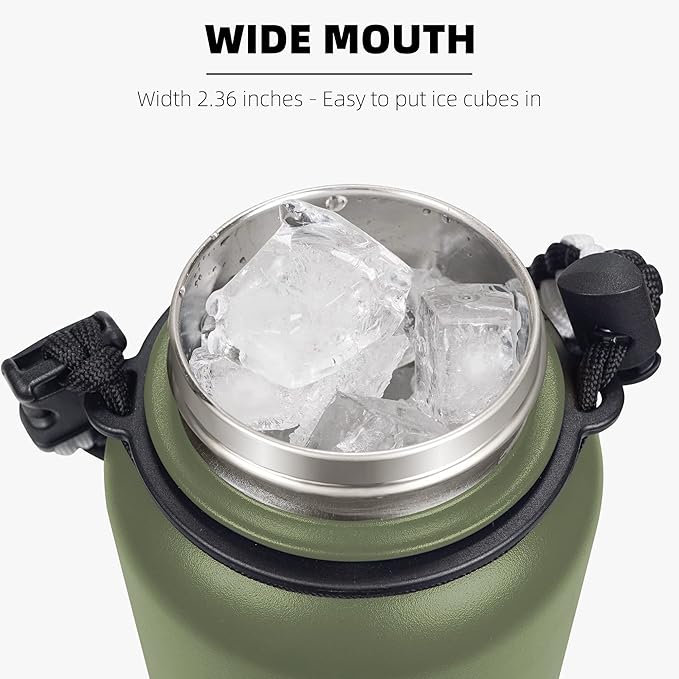 Fanhaw 40 Oz Stainless Steel Insulated Sports Water Bottles with Straw for Kids, Men and Women (Olive Green)