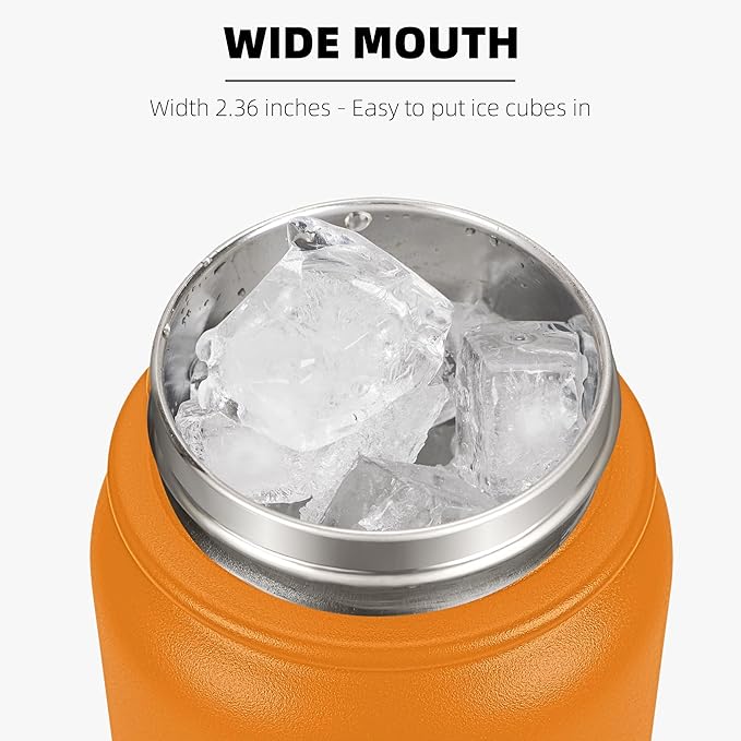 Fanhaw 32 Oz Stainless Steel Insulated Sports Water Bottles with Straw for Kids, Men and Women (Yellow Orange)