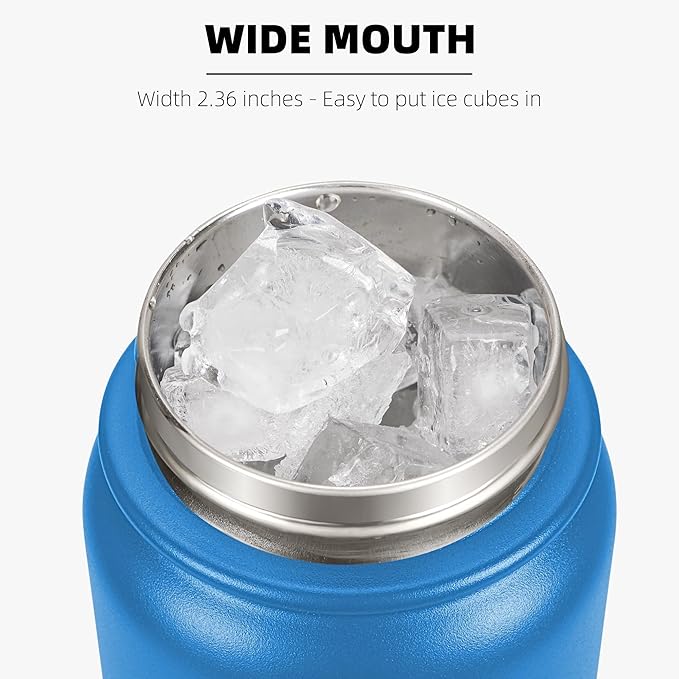 Fanhaw 32 Oz Stainless Steel Insulated Sports Water Bottles with Straw for Kids, Men and Women (Sky Blue)