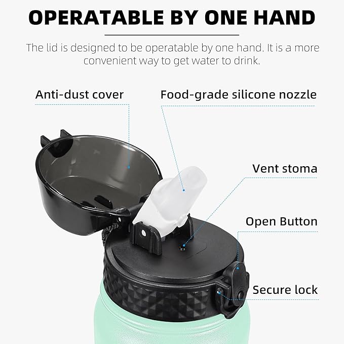 - The bottles are crafted from 18/8 stainless steel, while the lids are constructed from PP. Both materials are food-grade, BPA-free, and lead-free.