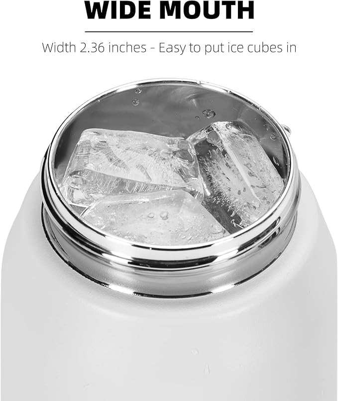 Fanhaw 24 Oz Stainless Steel Insulated Sports Water Bottles with Straw for Kids, Men and Women (White)