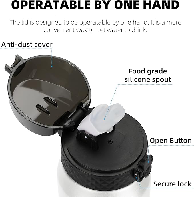 - The bottles are crafted from 18/8 stainless steel, while the lids are constructed from PP. Both materials are food-grade, BPA-free, and lead-free.