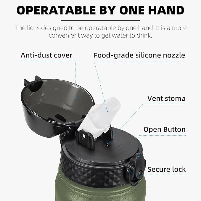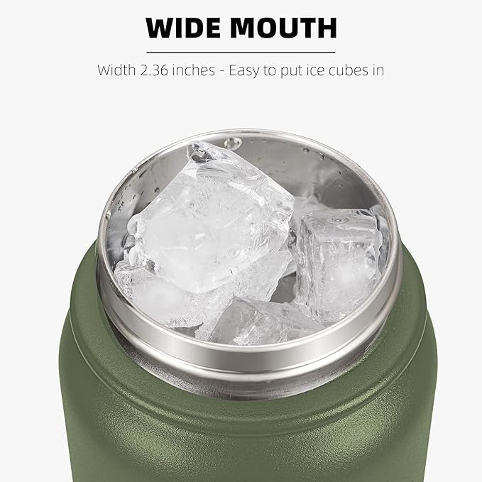 Fanhaw 32 Oz Stainless Steel Insulated Sports Water Bottles with Straw for Kids, Men and Women (Olive Green)