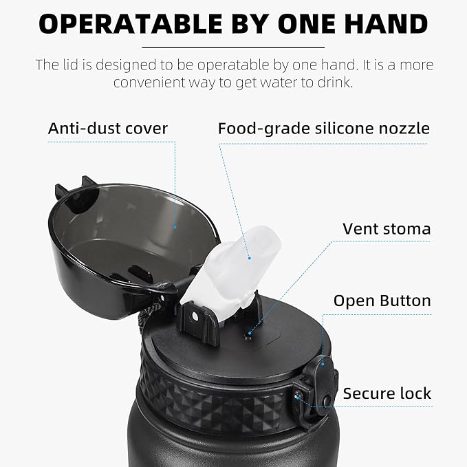 - The bottles are crafted from 18/8 stainless steel, while the lids are constructed from PP. Both materials are food-grade, BPA-free, and lead-free.