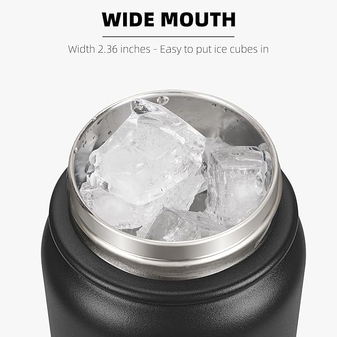 Fanhaw 32 Oz Stainless Steel Insulated Sports Water Bottles with Straw for Kids, Men and Women (Black)