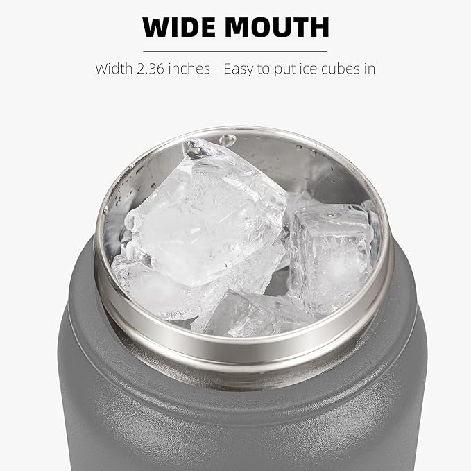 Fanhaw 32 Oz Stainless Steel Insulated Sports Water Bottles with Straw for Kids, Men and Women (Gray)