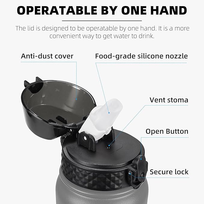 - The bottles are crafted from 18/8 stainless steel, while the lids are constructed from PP. Both materials are food-grade, BPA-free, and lead-free.