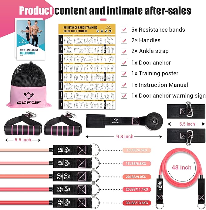 - 💞Upgraded Resistance Bands & After-sales Service: You will get resistance band*5, 2 handle, 2 ankle strap, 1 door anchor, 1 training poster, 1 instruction manual. To increase your workout intensity level, simply combine resistance bands with training posters to suit your workout needs. With resistance band exercises, you can get the perfect shape. If you encounter any problem while using the product, please contact us and we will help you to solve it within 12 hours.