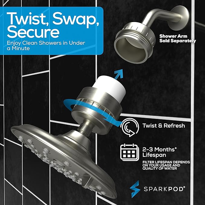 - Replaceable Cartridges: SparkPod’s new upgraded formula filters water to help with dry skin, rough hair and itchy skin. Enjoy 2-3 Months of filtered soft water per replacement Cartridge.