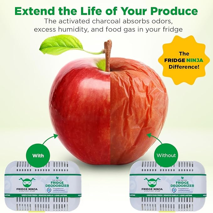 - POWERFUL FRIDGE DEODORIZER: Kick the stink out of your fridge once and for all with Fridge Ninja’s odor eliminator for strong odors. Our naturally activated bamboo charcoal odor absorbers banish lingering odors in your refrigerator for up to a year.