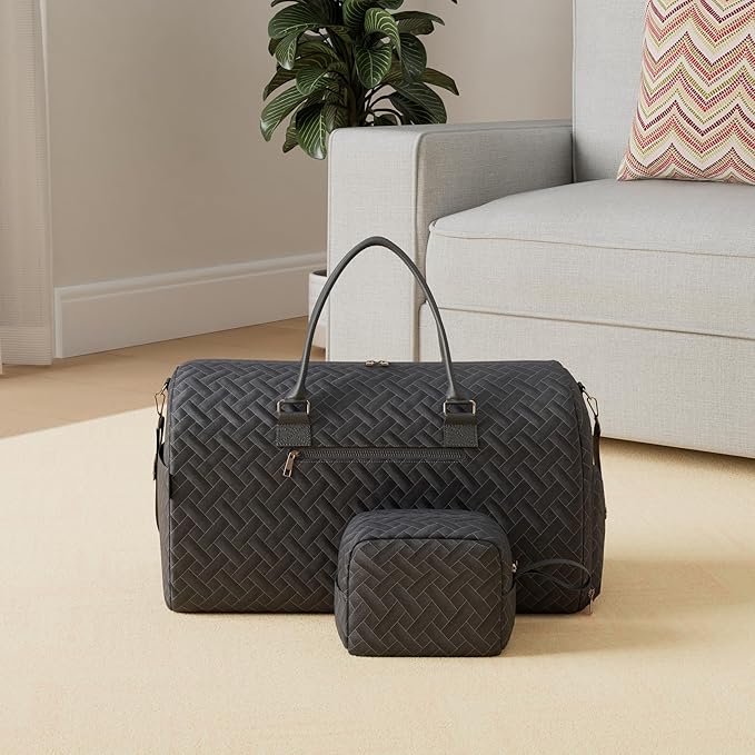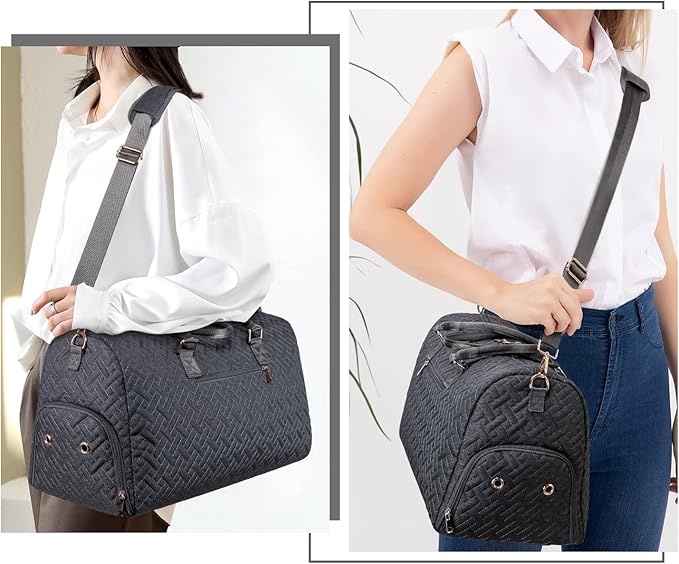 - CAPACITY UPGRADE WEEKENDER BAG - To accommodate more items, we have increased the length and height of weekender bags for women, measuring 23.4*11*11.6 inches. Spacious enough to hold 3-5 days of daily essentials such as clothes, shoes, toiletries, laptop, Ipad and other items. Very suitable for people who travel for long periods of time and long business trips.