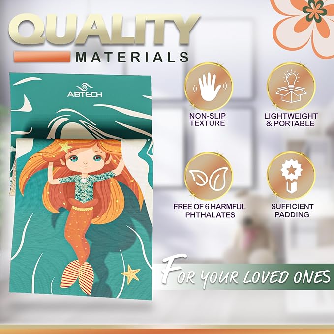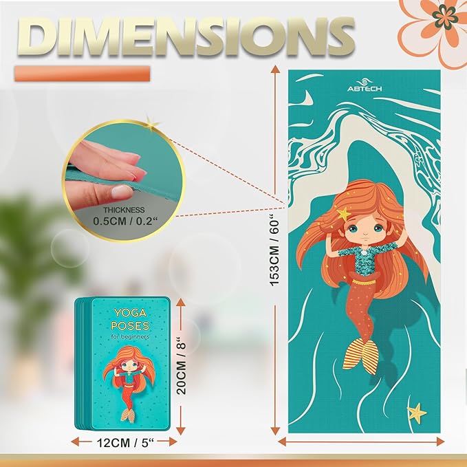- Yoga Accessories for Kids - Our Cute mermaid yoga mat for girls is a portable kids yoga mat set for class, school, or home. Lightweight, it comes in a carrying bag with a carrier strap