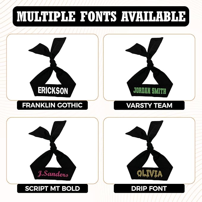 - PERSONALIZED FOR YOU: Make this sweat tie headband your own by customizing it with your name or text! Personalize this headband in multiple font options with a nickname, jersey number, date, or any text!