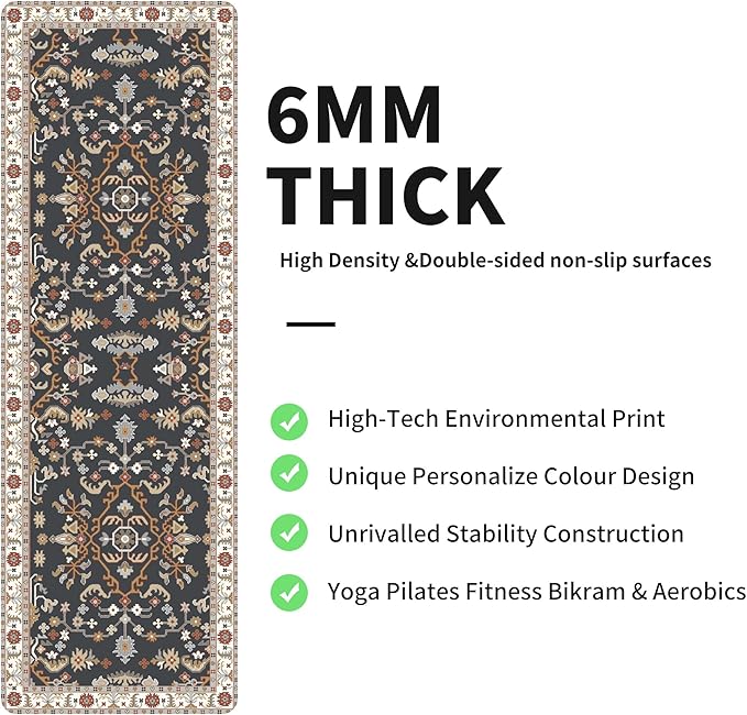 - ▨ EXTRA THICK LONG AND WIDE:72"x 24" offers adequate space to fit any type of exercise like yoga, pilates, fitness exercise and so on. nuveti's exercise mat is is more safer and comfortable. It is perfect for practicing balance postures, Especially the 6mm extra thick is high density, Provides excellent cushioning and resilience, All our mats come with a free bag for easy transport from home to yoga class.