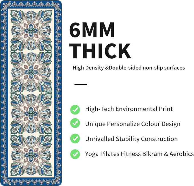nuveti Yoga Mat Print Extra Thick TPE Non Slip Fitness Exercise Mat with Carrying Bag,72"x24" Extra Thick 6MM Exercise & Workout Mat for Yoga, Pilates Fitness and Floor Exercises