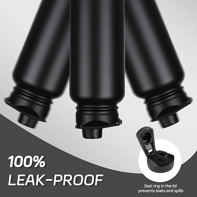 HASLE OUTFITTERS 32 oz Insulated Water Bottle Stainless Steel Double Walled Vacuum Sports Water Bottle with 2 Lids (Straw and Spout Lid) for Gym Camping Hiking(Black,1)