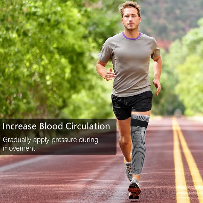 - Rapid Recovery With Graded Compression: Our long knee support graded compression promotes blood circulation, helps promote injury recovery, and alleviates knee bone and joint pain caused by arthritis, myositis, swelling, meniscus tears, strains, sprains, leg spasms, and varicose veins.