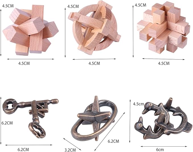 - Metal and Wood Brain Teaser 6 Set for Kids and Adults - All the coils and blocks are smooth and have NO SHARP EDGES for endless play without getting hurt. The links are made from heavy-duty 4.5 stainless steel as well as lightweight and durable beech wood that doesn’t easily bend or break even when thrown or stepped on. Players can’t force them open so there is no chance of cheating. It has also passed the ASTM F963 International Toy Safety Standards and guarantees it’s top-notch quality.