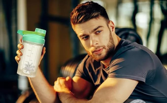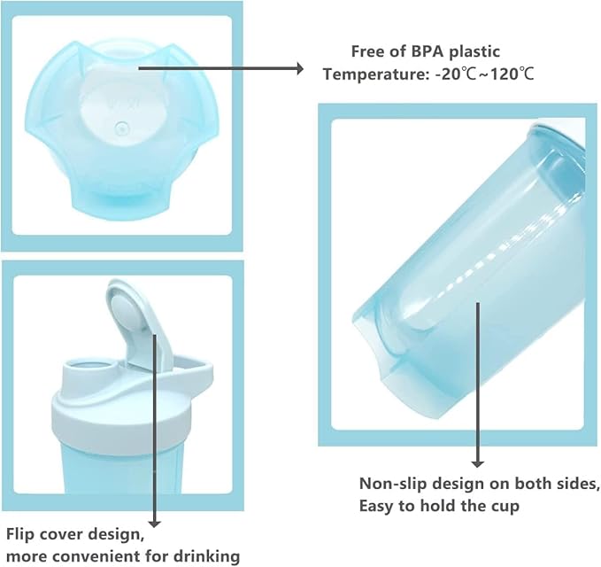 Shaker Bottle Perfect Nutrition w. Plastic Whisk Ball,Full Body for Microwave Heating(No Metal,BPA Free),Moden Loop Top,Dishwasher Safe,Leak Proof,Protein Powder/Fruit Juice Mixer 16oz(Green