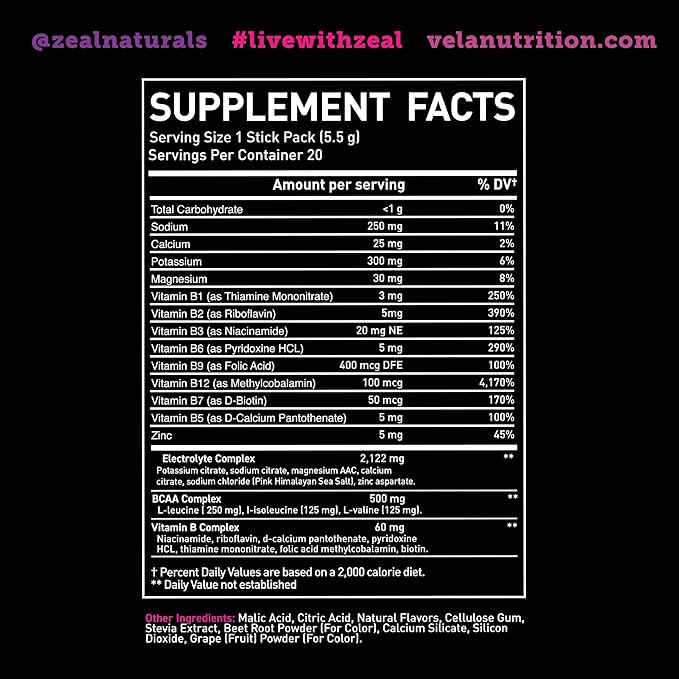 Enhanced Electrolyte Powder Stick Packs (Black Cherry | 20 Packets) w/ 0 Sugar +BCAAs +B-Vitamins Electrolyte Supplement w Potassium Zinc & Magnesium for Hydration - Keto Electrolytes