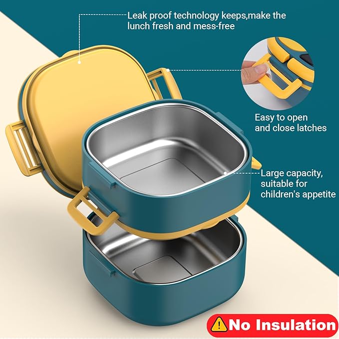 - Leak-Proof & Safe Design: Featuring double-sided locks and airtight lids, this bento box ensures no spills or leaks, keeping food fresh and flavors separate. Perfect for kids and adults on the go! ---Tip: While it doesn’t have heat preservation, you can warm the stainless steel compartment by placing hot water in the plastic bowl. (Handle with care!)