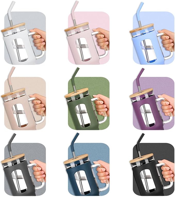 - SCIENTIFIC HANDLE DESIGN-WINSA coffee tumbler have ergonomic handle, so you can easily hold the cup, no matter if the cup is cold or hot, you can use the handle to avoid irritation of your hands. The glass water bottle with handle is better to hold and it is not easy to slip from the hand, which is loved by most people.