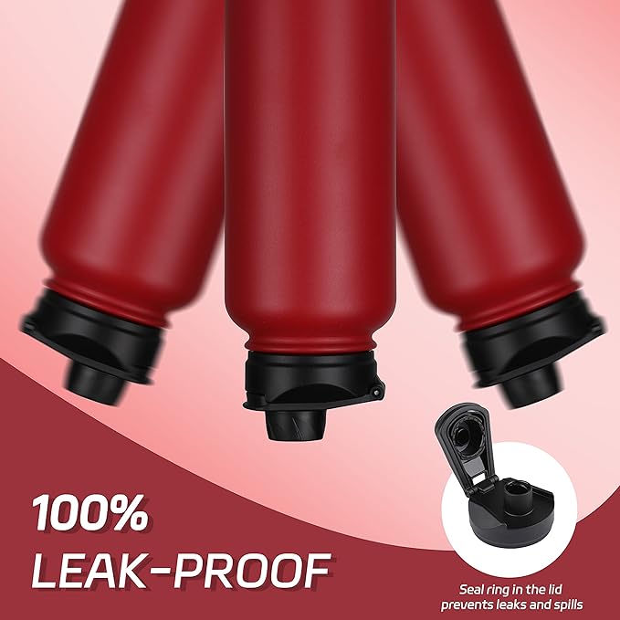 HASLE OUTFITTERS 32 oz Insulated Water Bottle Stainless Steel Double Walled Vacuum Sports Water Bottle with 2 Lids (Straw and Spout Lid) for Gym Camping Hiking(Red,8)
