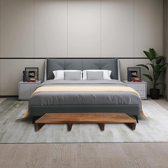 - 【Multi-functional wood step stool】: This half wooden step is versatile and convenient for negotiating high steps on porches, back/front doorways, cabinets, and kitchen workstations. It also eases stepping up and down from high beds, making it a valuable addition to any household.
